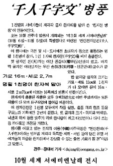 ÀÌ Çà»ç¿¡´Â ±¹Àü ¹× ½Ã.µµ¼¿¹Àü ÃÊ´ëÀÛ°¡ µîÀ¸·Î Ȱµ¿ÇÏ´Â ¸íÇÊ 1õ¸íÀÌ Âü°¡, 1ÀÎ 1ÀÚ¾¿ õÀÚ¹®(ô¶í®Ùþ)À» ½á¼ ÃâǰÇÑ´Ù.