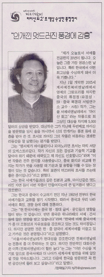 ¸¶ÀÌ»ê ȸ°í·Î ´ë»ó ¼ö»óÇÑ ·ùÁ¤Ã»¾¾