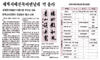 2001¼¼°è¼¿¹ÀüºÏºñ¿£³¯·¹°¡ 6ÀÏ °³¸·À» ½ÃÀÛÀ¸·Î 11¿ù 5ÀϱîÁö Çѹ®±Ç»Ó ¾Æ´Ï¶ó ¼¼°è¹®ÀÚ¿¹¼úÀÇ ¾Æ¸§´Ù¿ò°ú ¿ì¼ö¼ºÀ» º¼ ¼ö ÀÖ´Â ´Ù¾çÇÑ Àü½Ã°¡ Çѱ¹¼Ò¸®ÀÇ ¹®ÈÀÇ Àü´ç°ú ÀüºÏÇлýÁ¾ÇÕȸ°ü, ÀüºÏ¿¹¼úȸ°ü µî¿¡¼ ´Ùä·Ó°Ô ¿¸°´Ù.