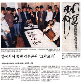 2001¼¼°è¼¿¹ÀüºÏºñ¿£³¯·¹(Á¶Á÷À§¿øÁ¤ ¼ÛÇϰæ)°¡ 6ÀÏ ¿ÀÈÄ 2½Ã Çѱ¹¼Ò¸®¹®ÈÀÇ Àü´ç ±¹Á¦È¸ÀÇÀå¿¡¼ °³¸·µÈ °¡¿îµ¥ ´ëȸ ÃÖ°í ¿µ¿¹ÀÎ ±×¶ûÇÁ¸®·Î Çѱ¹ ¼¿¹°¡ ±èÈÆ°ï¾¾°¡ ½ÃÀÎ À̹éÀÇ ÀÛǰ ÀϺθ¦ ÈÖÈ£ÇÑ 'Ãá¾ß¿¬µµ¸®¿ø¼(õðå¨ê®Óþì°ê®ßí)'°¡ ¼±Á¤µÅ. »óÆÐ¿Í ¹ÌÈ 5õºÒÀ» »ó±ÝÀ¸·Î ¼ö»óÇß´Ù.