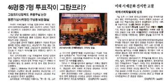 | 76¸í °¡¿îµ¥ 7Ç¥·Î ±×¶ûÇÁ¸®°¡ ¼±Á¤µÆ´Ù´Â ÀÚü¸¸À¸·Î ÀÌ Á¦µµ°¡ Á¦ÀÚ¸®¸¦ ÀâÁö ¸øÇß´Ù´Â Áõ°Å°¡ Á¦½ÃµÈ ¼ÀÀÌ´Ù.