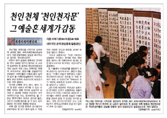 ¾î¸°ÀÌ ÇÑÀÚ ±³½ÀÀÇ Çʵ¶¼ÀΠõÀÚ¹®À» ±¹³» 1000¸í ÀÛ°¡°¡ ÇÑÀÚ¾¿ ½á ³»·Á°¡ ÀϹݿ¡°Ô ù °ø°³µÈ õÀÎõÀÚ¹®ÀüÀº °¡·Î 14m¿Í ¼¼·Î2.4m, 16ÆøÀ̶õ ¿ÜÇüÀû ´ë±Ô¸ð¿¡µµ °¨Åº»ç¸¦ ¿¬¹ßÇßÁö¸¸ 1000¸íÀÇ ¼¿¹ÀεéÀÇ ¸¶À½°ú È¥ÀÌ ´ã°ÜÁ® ÀÖ¾î ¿Ã ¼¿¹ºñ¿£³¯·¹¿¡¼ ±¹³»¿ÜÀεéÀÇ °ü½É ÁõÆøÀº ¼º°ø¿äÀÎÀÇ ÀÏµî°ø½ÅÀ¸·Î ÀÚ¸® Àâ¾Ò´Ù.
