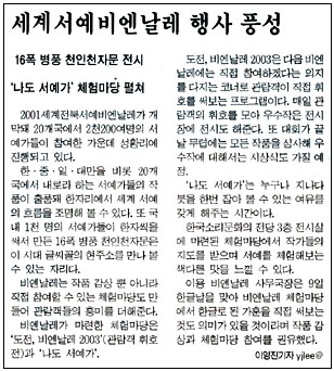ÇÑ¡¤Áß¡¤ÀÏ¡¤´ë¸¸À» ºñ·Ô 20°³±¹¿¡¼ ³»·Î¶ó ÇÏ´Â ¼¿¹°¡µéÀÇ ÀÛǰÀÌ ÃâǰµÅ ÇÑÀÚ¸®¿¡¼ ¼¼°è ¼¿¹ÀÇ È帧À» Á¶¸íÇØ º¼ ¼ö ÀÖ´Ù. ¶Ç ±¹³» 1õ ¸íÀÇ ¼¿¹°¡µéÀÌ ÇÑÀÚ¾¿À» ½á¼ ¸¸µç 16Æø º´Ç³ õÀÎõÀÚ¹®Àº ÀÌ ½Ã´ë ±Û½Ã²ÃÀÇ ÇöÁÖ¼Ò¸¦ ¸¸³ª º¼ ¼ö ÀÖ´Â ÀÚ¸®´Ù.