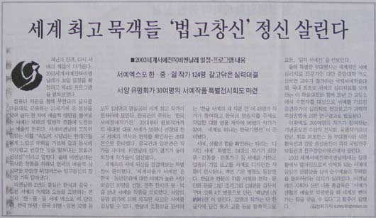 2003 ¼¼°è¼¿¹ÀüºÏºñ¿£³¯·¹¿¡´Â ½Ç»ýȰ¿¡¼ ¸Ö¾îÁüÀ¸·Î½á ¹ÚÁ¦È µÇ´Â ¼¿¹¿¡ ÀÏ»óÀÇ ÁøÁ¤¼ºÀ» ½É¾î ¼ø¼ö¿¹¼úÀÇ ¹«·ÂÇÔÀ»