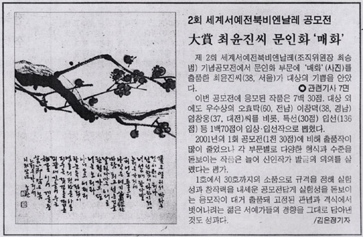 Á¦2ȸ ¼¼°è¼¿¹ÀüºÏºñ¿£³¯·¹(Á¶Á÷À§¿øÀå Ãֽ¹ü) ±â³ä°ø¸ðÀü¿¡¼ ¹®ÀÎÈ ºÎ¹®¿¡ '¸ÅÈ'¸¦ ÃâǰÇÑ ÃÖÀ±Áø¾¾(38, ¼¿ï)°¡