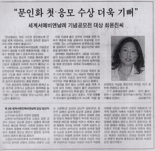 Á¦ 2ȸ ¼¼°è¼¿¹ÀüºÏºñ¿£³¯·¹ ±â³ä°ø¸ðÀü¿¡¼ ´ë»óÀ» ¼ö»óÇÑ ÃÖÀ±Áø¾¾(38, ¼¿ï µµºÀ±¸ ½Ö¹®µ¿ 199-1 ±ÝÈ£¾ÆÆÄÆ®