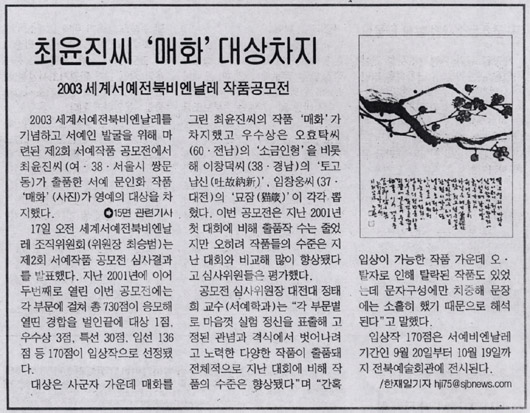 2003 ¼¼°è¼¿¹ÀüºÏºñ¿£³¯·¹ ±â³äÇÏ°í ¼¿¹ÀÎ ¹ß±¼À» À§ÇØ ¸¶·ÃµÈ Á¦2ȸ ¼¿¹ÀÛǰ °ø¸ðÀü¿¡¼ ÃÖÀ±Áø¾¾(¿©.38.¼¿ï½Ã