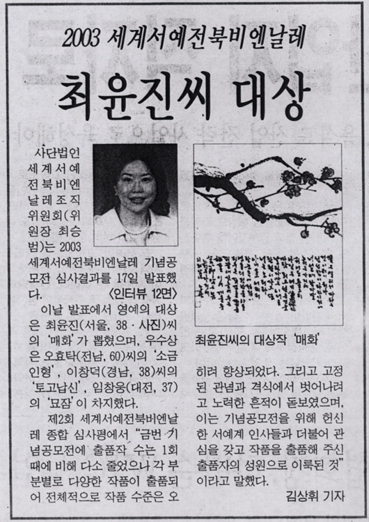 À̳¯ ¹ßÇ¥¿¡¼ ¿µ¿¹ÀÇ ´ë»óÀº ÃÖÀ±Áø(¼¿ï, 38)¾¾ÀÇ ¡®¸ÅÈ¡¯°¡ »ÌÇûÀ¸¸ç, ¿ì¼ö»óÀº ¿ÀȿŹ(Àü³², 60)¾¾ÀÇ ¡®¼Ò±ÝÀÎÇü¡¯,