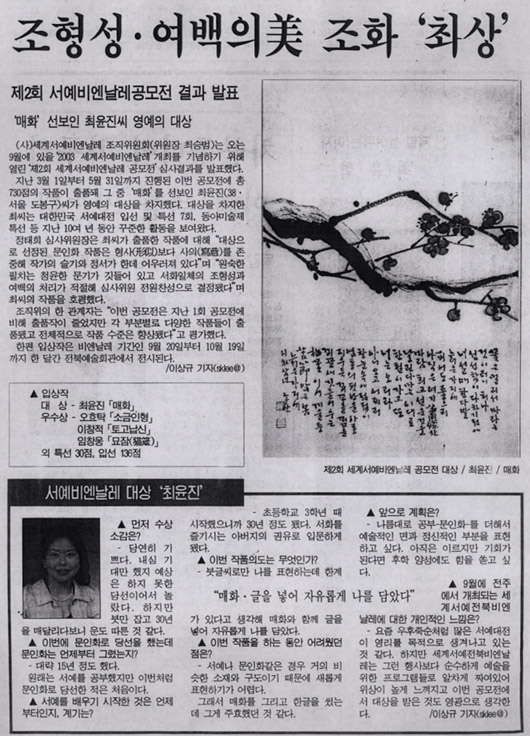 Áö³ 3¿ù 1ÀϺÎÅÍ 5¿ù 31ÀϱîÁö ÁøÇàµÈ À̹ø °ø¸ðÀü¿¡ ÃÑ 730Á¡ÀÇ ÀÛǰÀÌ ÃâǰµÅ ±× Áß ¡®¸ÅÈ¡¯¸¦ ¼±º¸ÀÎ ÃÖÀ±Áø(38¤ý¼¿ï