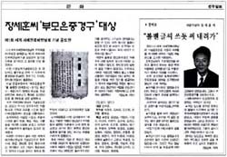 À̳¯ Çѱۺι®¿¡¼ 'ºÎ¸ðÀºÁ߰汸'¸¦ ÃâǰÇÑ Àå¼¼ÈÆ(42¡¤°æ±âµµ ¿ëÀν᤻çÁø)¾¾°¡ ¿µ¿¹ÀÇ ´ë»óÀ» ¼ö»óÇÏ¿´À¸¸ç,